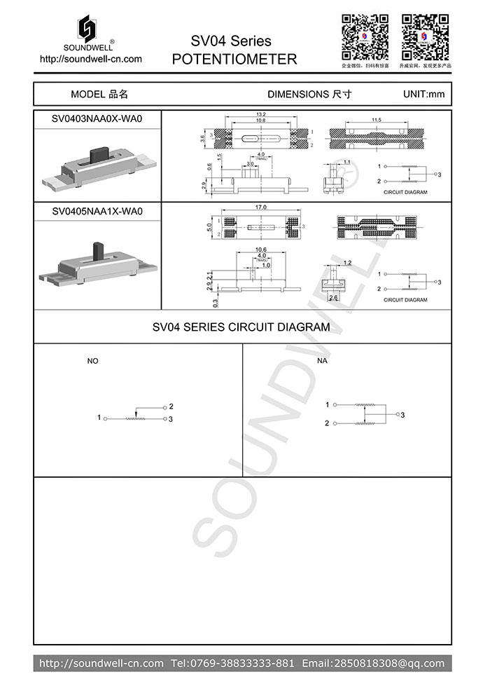 Travel: 4mm; Resistance Tolerance: ±20%; Rated power: 0.005W; Operating temperature: -10℃~70℃; Operating life: 5,000 Min; |