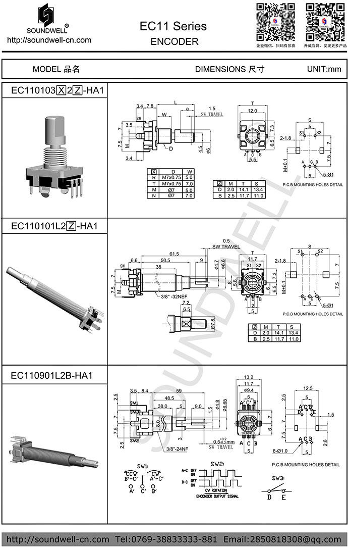 Small size encoder with highly reliable performance; Available in many different variants. |