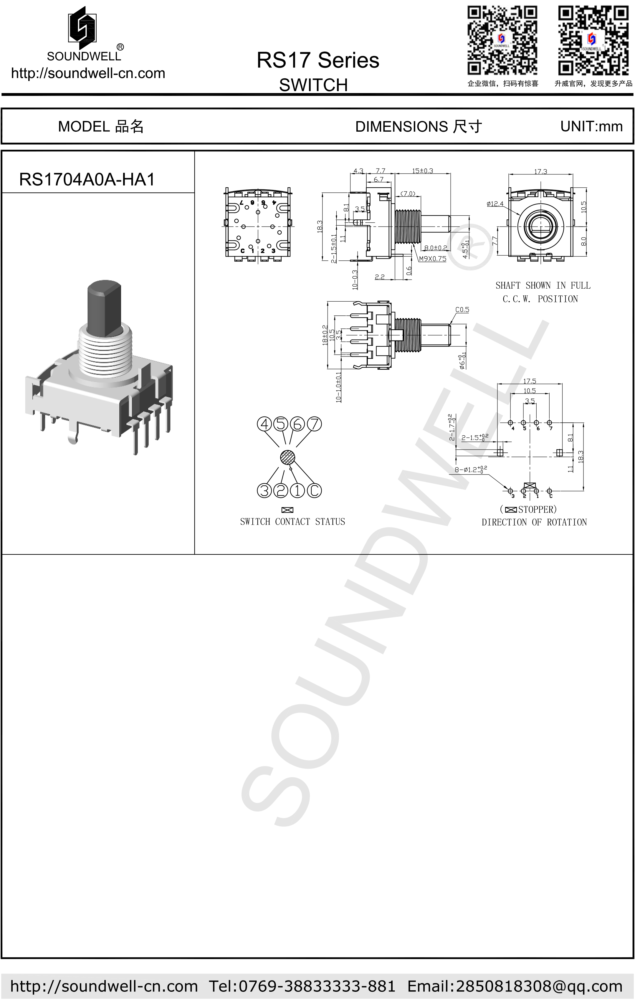 2~7 positions available with clear sense of clicks; Available in various shaft options; |
