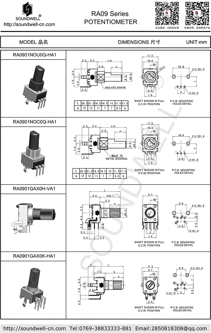 | Potentiometer model: | RA09 series |