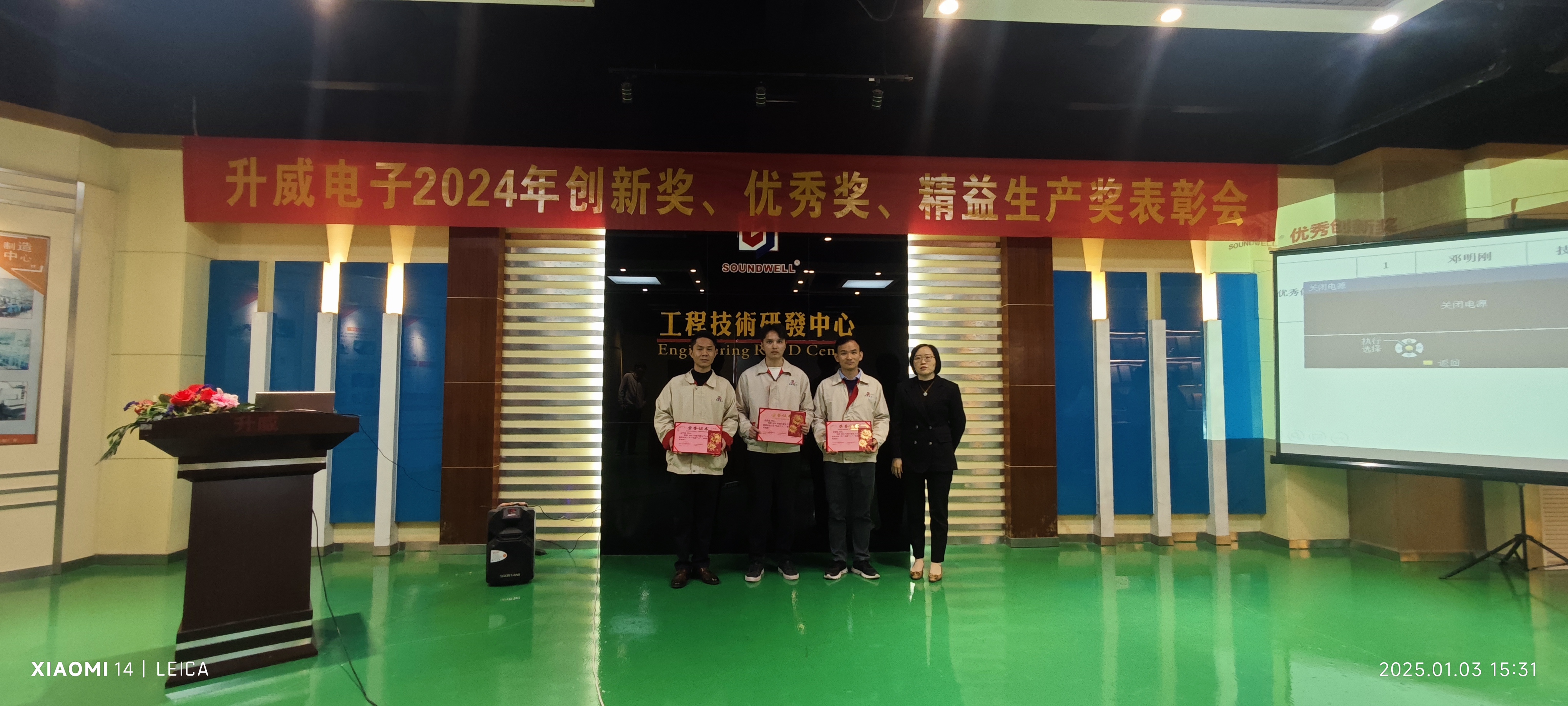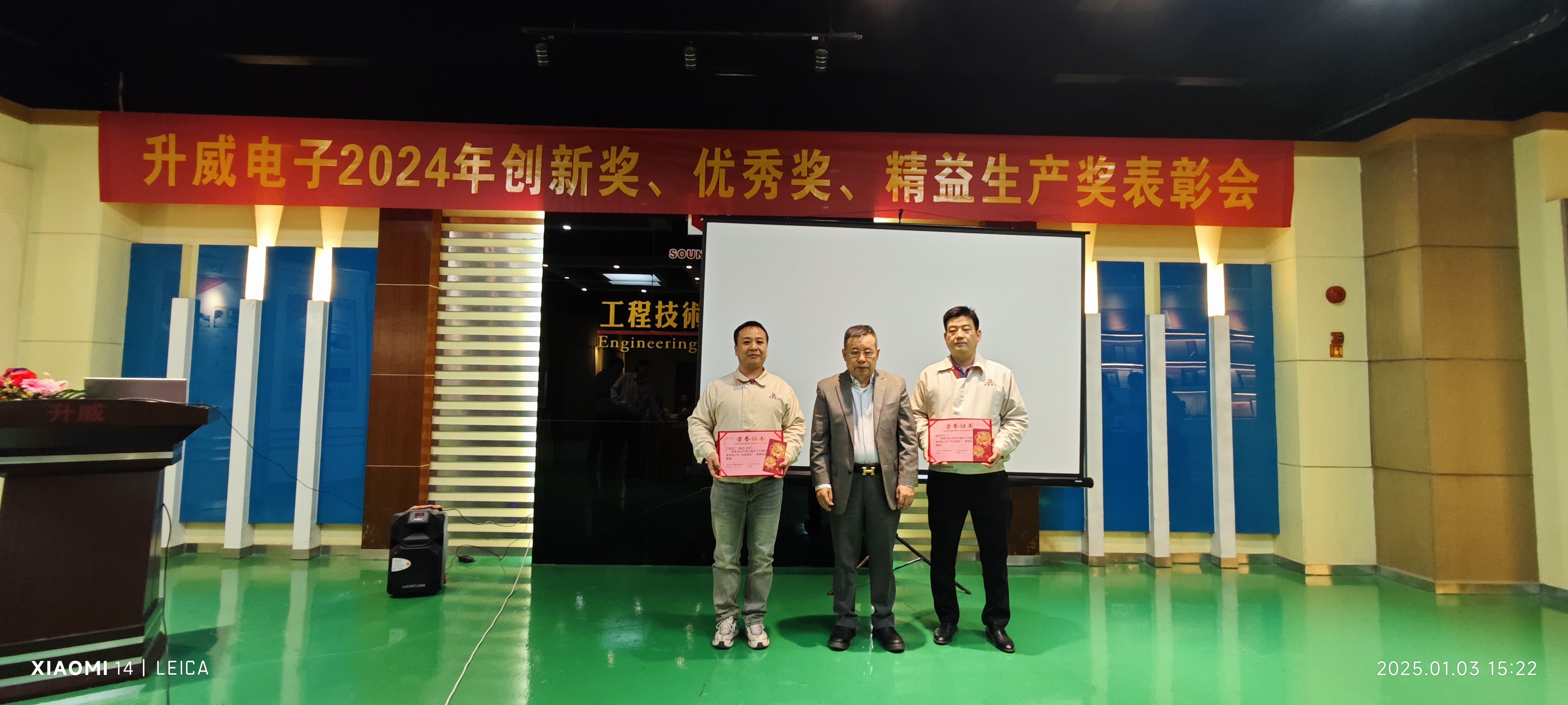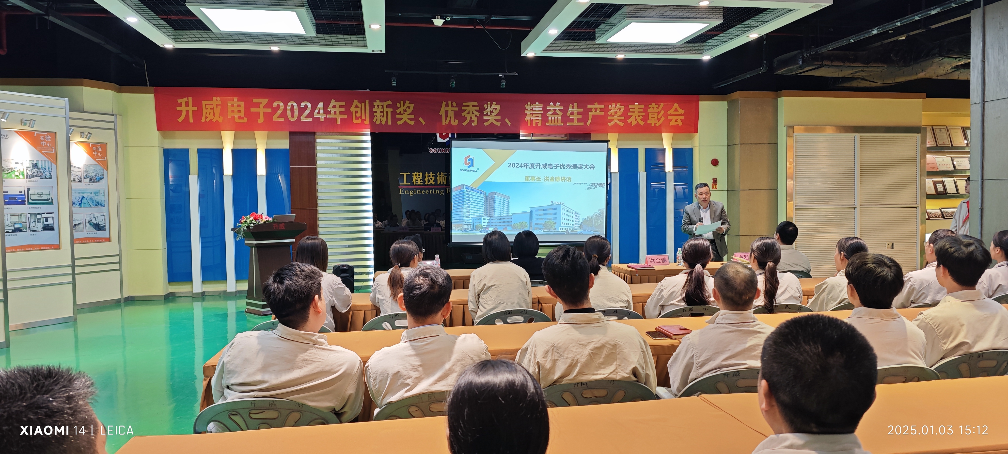 為在全公司營造“積極、向上、進(jìn)取、奉獻(xiàn)”的工作氛圍,激發(fā)升威人主人翁精神,不斷創(chuàng)造新的成績。2025年1月3日,升威電子舉辦2024年度評優(yōu)評先表彰大會。以表彰創(chuàng)新人才、優(yōu)秀個人以及優(yōu)秀部門,并設(shè)置優(yōu)秀部門獎、創(chuàng)新獎、精益生產(chǎn)獎、優(yōu)秀勞動獎等四大獎項(xiàng)。