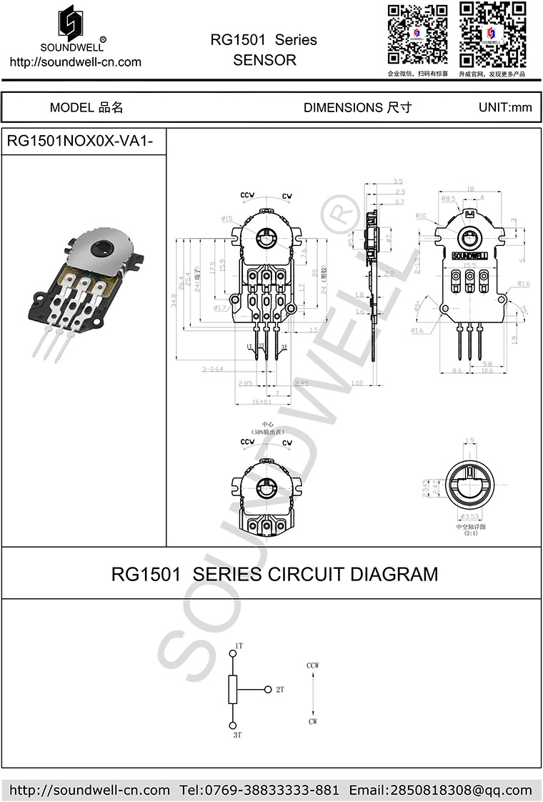 1、Total Resistance Range 總阻及誤差 :10KΩ±20%