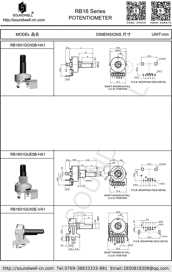 | 旋轉 電位器型號: | RB16 |